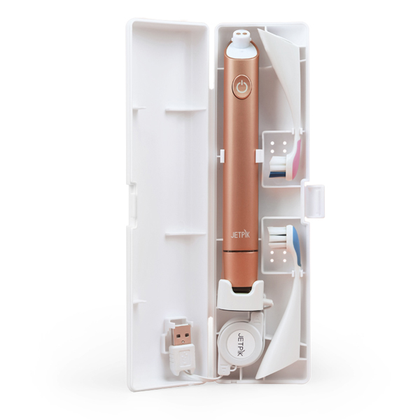 Якість Вашої процедури очищення істотно залежить від зубної щітки, яку Ви вибрали. Не відмовляйте собі в ефективному догляді, вибирайте тільки найякісніші девайси, які зможуть зробити рутинне очищення максимально дієвим і ретельним. Оригінальна зубна щітка Jetpik JP 300 Gold Rose — це абсолютно новий підхід до проведення процедури очищення. З нею Ви дізнаєтеся, що таке повноцінний догляд за зубами та всією ротовою порожниною. Jetpik JP 300 Gold Rose обладнана сучасною звуковою технологією, особливістю якої є створення динамічного потоку рідини. Щітка створює 30000 обертів на хвилину, забезпечуючи інтенсивний рух щетини. За лічені хвилини Ви зможете провести якісне очищення всіх квагантів ротової порожнини.